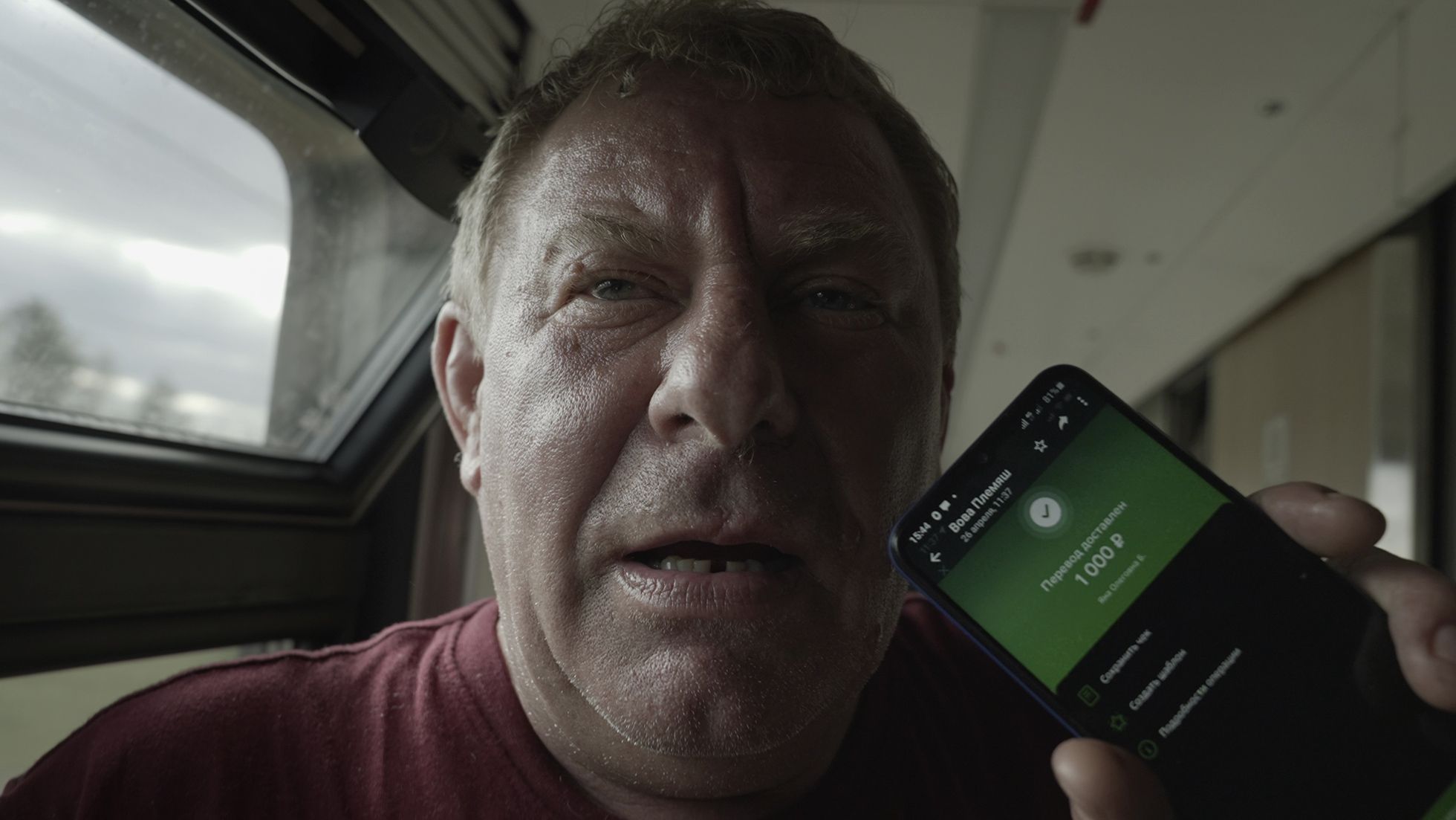Из другого купе, где в ногах устроилась серая маламутиха Кора, а на верхней полке — собака поменьше, вываливается Николай, краснолицый мужчина лет пятидесяти без единого седого волоса в рыжеватых волосах. Он навеселе. Глаза блестят, и Николай гордо показывает людям в коридоре мобильник с только что полученным переводом. «Вот, племянник родной прислал. Десять тысяч, чтобы дядя с голоду не сдох. Нам обещали по десять тысяч на каждого члена семьи. И что? Вот мое государство, вот мой страховой полис. Смотрите все!»