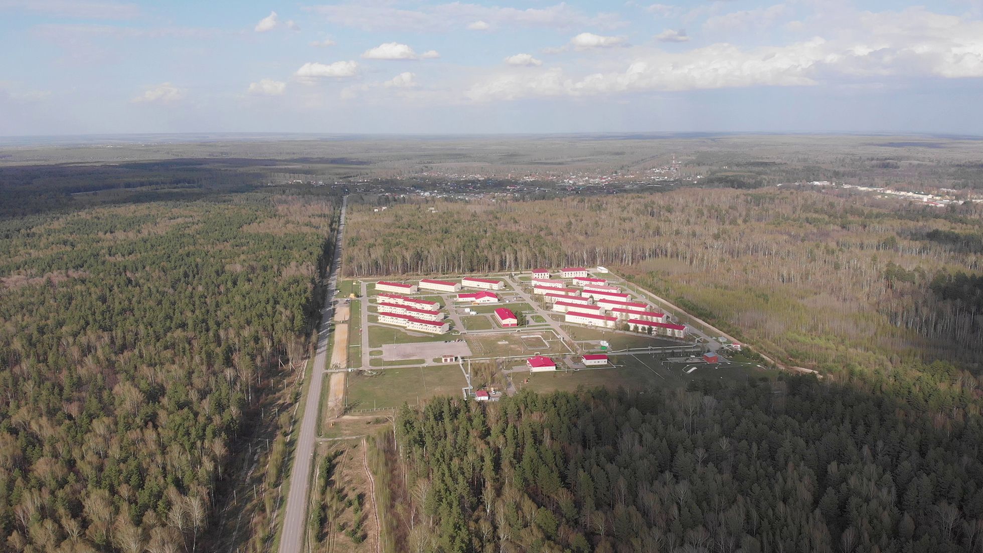 Полчаса езды, и машина уже в селе Леонидовка. Там, на вырубленном в лесу огромном квадрате, огороженном сеткой-рабицей, стоят длинные двухэтажные дома с красными крышами.