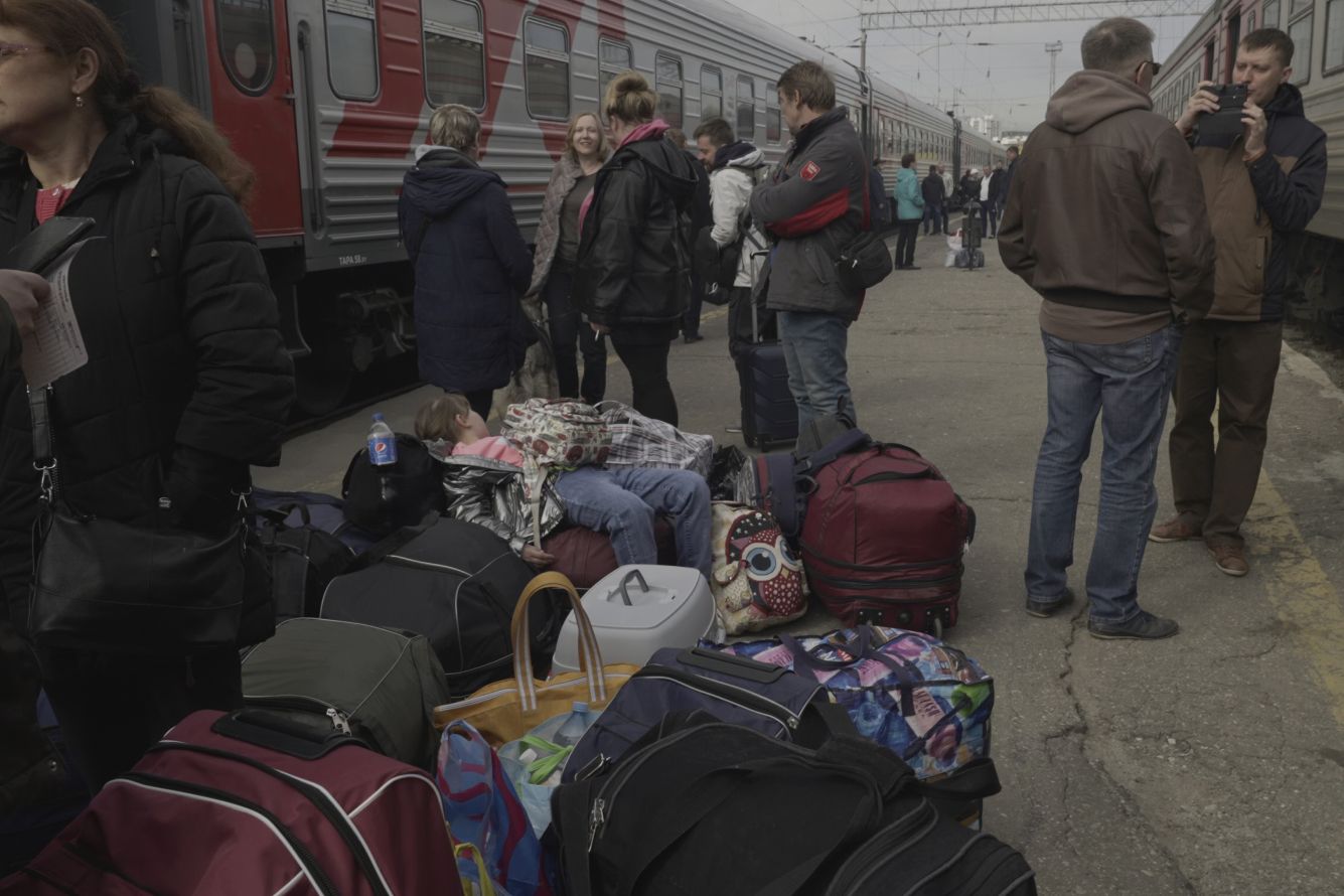 Кто-то едет в Россию по убеждениям, кто-то (из молодых мужчин) — чтобы избежать призыва в [украинскую] армию или попасть транзитом в Европу; из Украины потенциальных призывников не выпускают. А у жителей Левобережного района Мариуполя нет выбора: мосты уничтожены, путь в Запорожье закрыт. Но большинство просто хочет уехать подальше от голода и смерти, все равно куда.