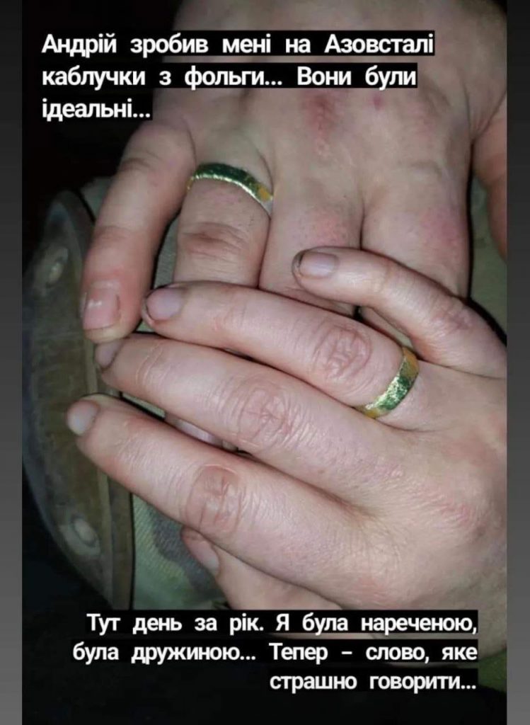 «Мы успели жениться. Успели быть счастливы <…> Здесь день за год. Я была невестой, была женой... Теперь — слово, которое страшно говорить», — написала Карпиленко в сторис в инстаграме.
