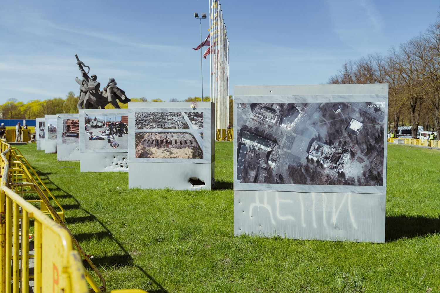 The Latvian State Police called on people not to take part in any protests on May 9, including by leaving flowers, since “this could be used by Russian propaganda to justify the war in Ukraine.” The police also cautioned people against using the letters Z and V, Soviet symbolism, the Russian flag, or the flags of the self-proclaimed Donbas republics, as any of those things would “be considered symbols in support of the war.” They also cited the pandemic as a reason not to hold rallies. Part of the square was fenced off in advance of May 9.