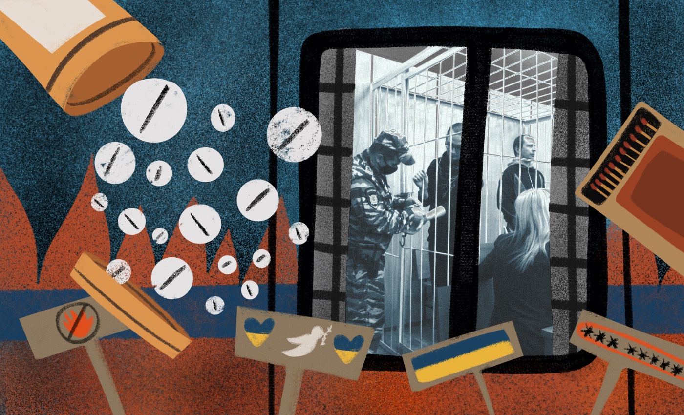 После задержания на антивоенном митинге 6 марта двое омичей, Владимир Сергеев и Антон Жучков, оказались в больнице с передозировкой метадона. Наркотик они приняли в автозаке, чтобы свести счеты с жизнью. Теперь друзей обвиняют в подготовке теракта — попытке поджечь коктейлями Молотова полицейский автомобиль. Сергеев решил вину признать: говорит, что планировал акцию в знак протеста против войны, поскольку «испытывал страх за Россию и ее будущее». Его друг Жучков настаивает, что планировал только суицид, «чтобы не видеть, что будет дальше».