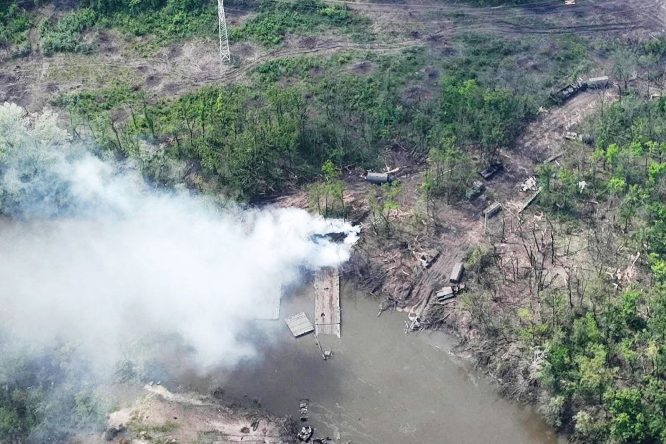 - В начале мая украинские войска предприняли попытку форсировать Донец совсем рядом (к западу) от города Изюма, где располагается штаб российской группировки и ее дальнобойная артиллерия. Наступление, похоже, не удалось, а Минобороны России опубликовало видео уничтожения авиационным ударом украинского понтонного моста у Протопоповки. Вероятно, с тех пор были предприняты новые попытки форсировать реку (в районе Чепеля), но о продвижении крупных украинских сил к Изюму не сообщалось. Снабжать крупные подразделения украинское командование тут, видимо, не может: нет надежных переправ.