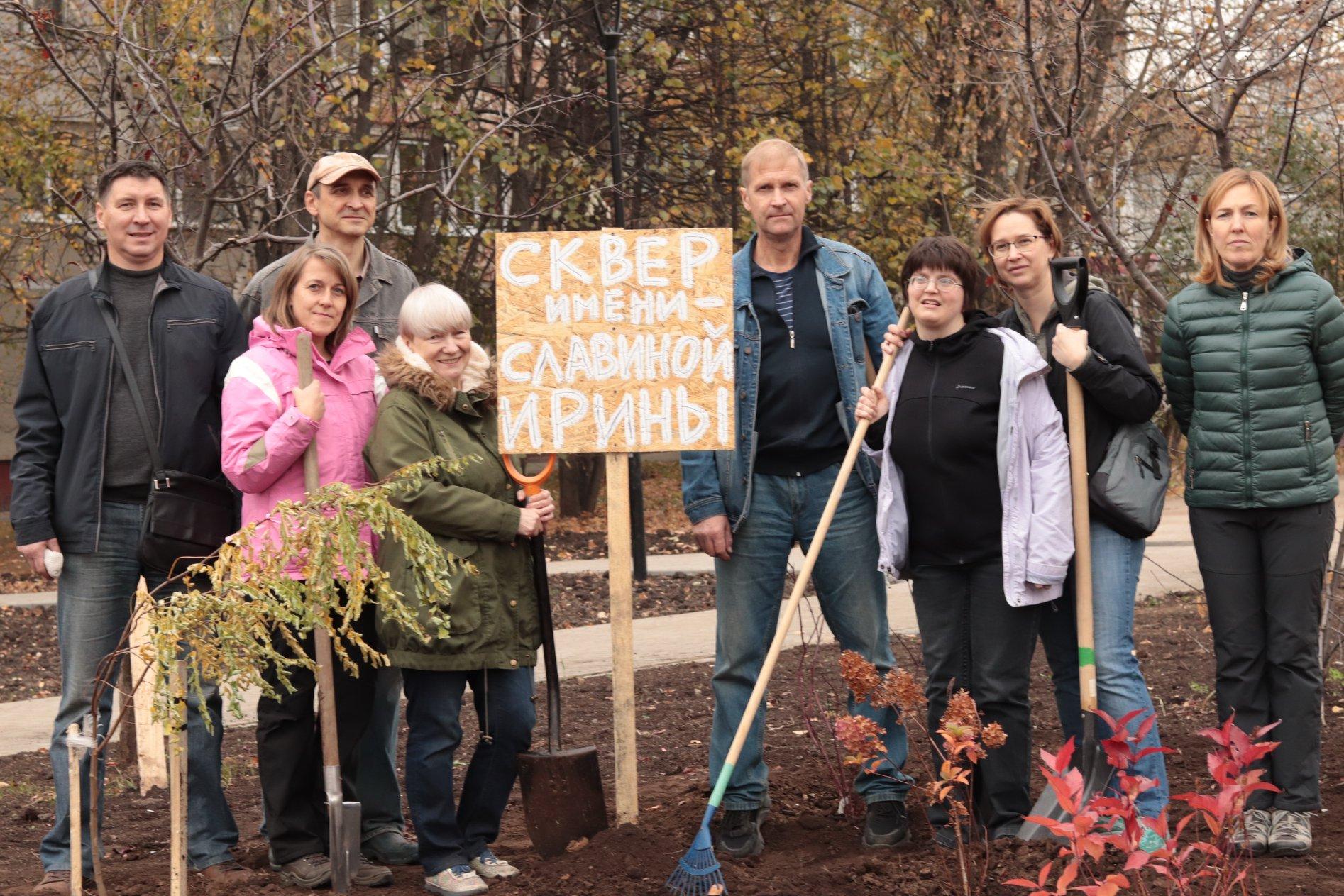 Одним из инициаторов идеи дать скверу имя Ирины Славиной стал экологический центр "Дронт", сотрудники которого обратились с заявкой в мэрию. Но власти им отказали, объяснив, что Ирина Славина – не "выдающийся государственный и общественный деятель либо представитель науки, культуры, искусства и других общественных сфер, заслуживший своей деятельностью широкого признания".