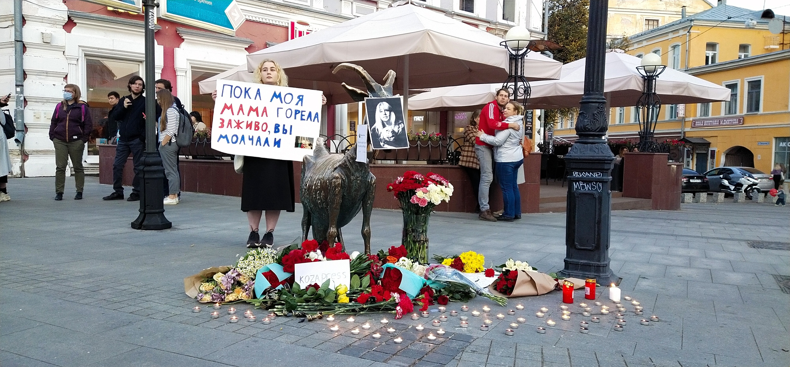 На следующий день Славина сожгла себя у здания главного управления МВД по Нижегородской области. В фейсбуке она оставила предсмертную записку: "В моей смерти прошу винить Российскую Федерацию".