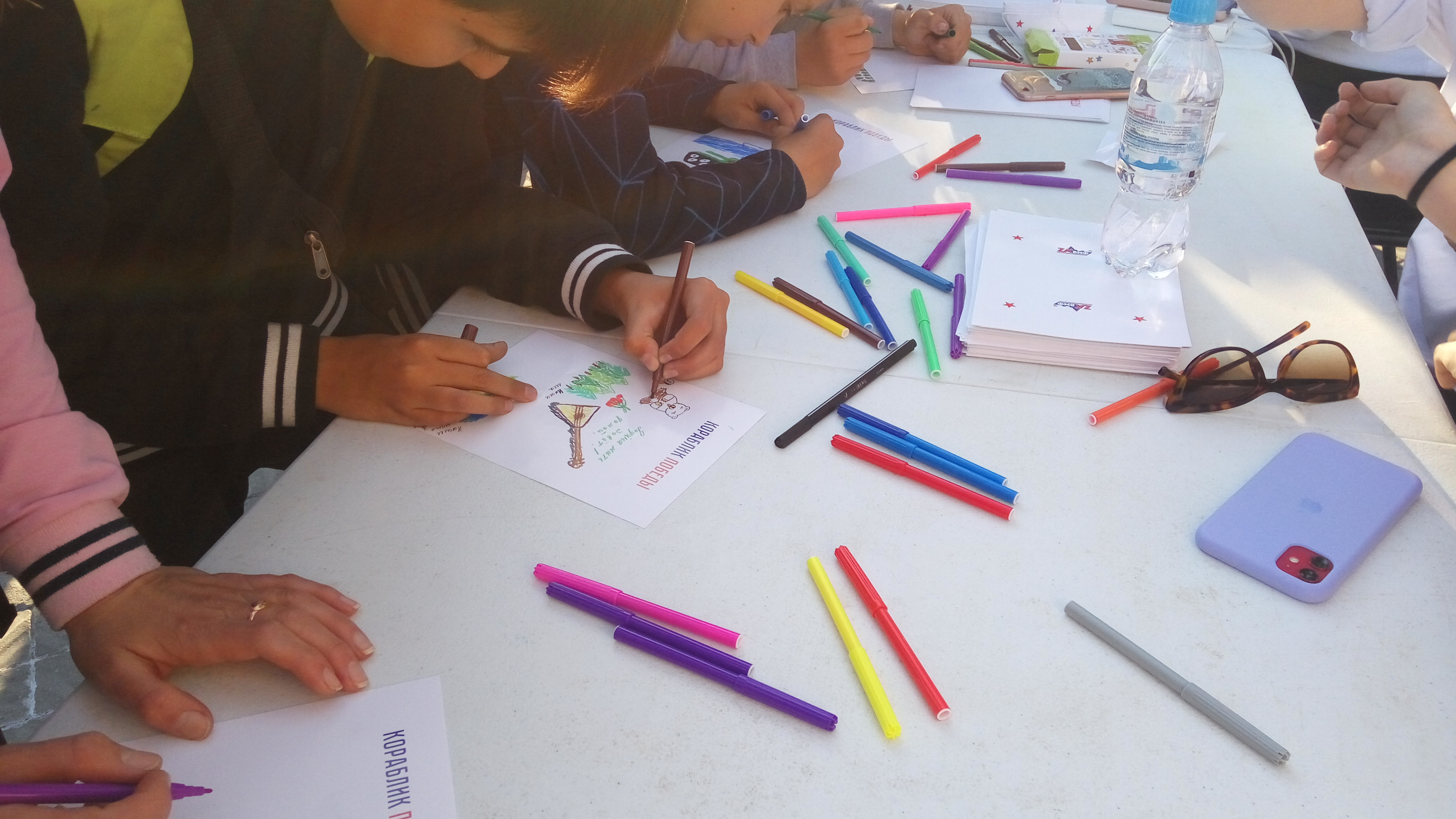 В перерывах организаторы призвали писать письма и делать видеообращения в поддержку российских военных. Ведущий говорил, что «надо поддержать наших ребят, которые нас защищают». Зрителям предлагали составить обращение за специальным столом рядом со сценой. Для этого организаторы заготовили бланки с заголовком «Кораблик победы».