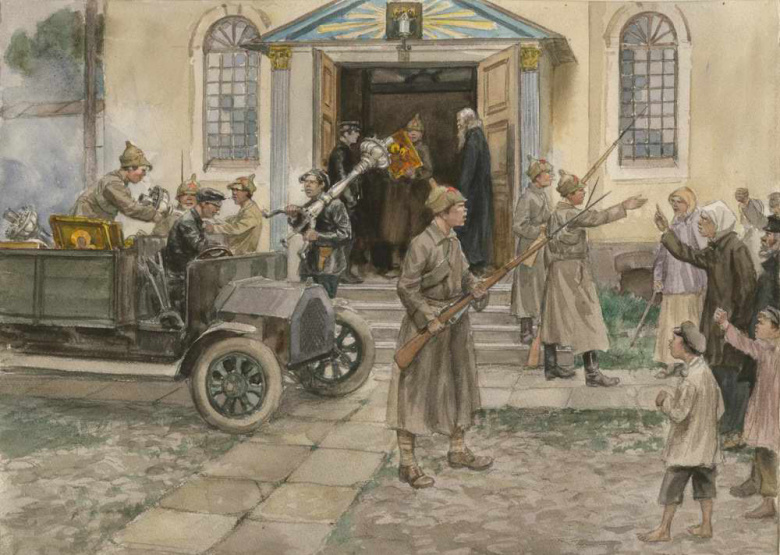 Изъятие церковных ценностей. Картина Ивана Владимирова, 1922.