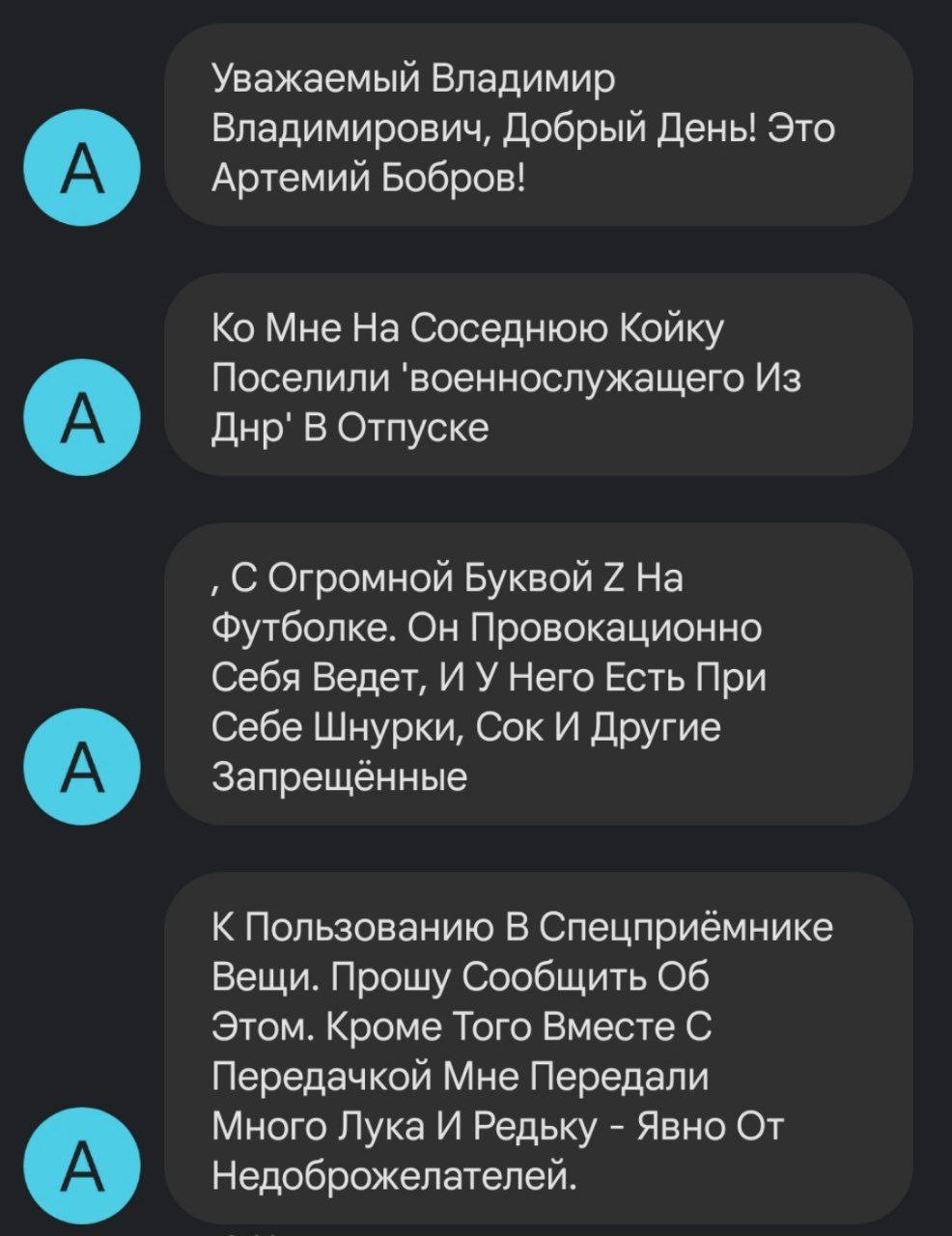 В настоящее время он отбывает арест в спецприемнике на ул. Мнёвники. Артемий сообщил сегодня, что прессинг в отношении него продолжается, состояние здоровья ухудшилось, болят места побоев, кружится голова (не исключено сотрясение мозга).