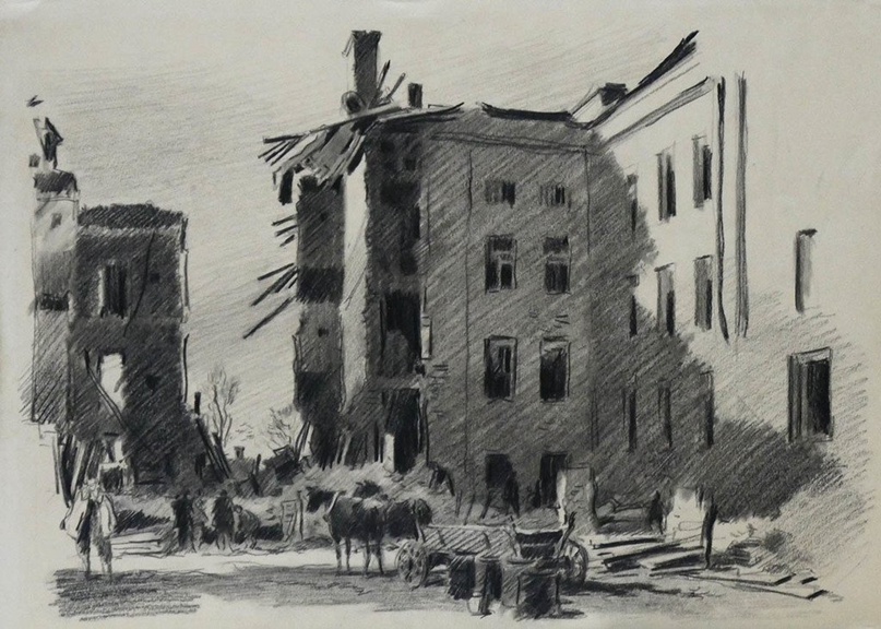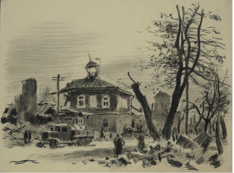 Любопытно, что в Курской государственной картинной галерее данный рисунок атрибутирован как «Разрушенный немцами жилой дом. Г. Орел». К сожалению, художник не всегда точно подписывал свои работы. Некоторые его орловские зарисовки вообще не были подписаны как сделанные в Орле. Это создает дополнительную путаницу и сложности в поиске рисунков Сигорского, созданных в ходе путешествия по нашему городу.