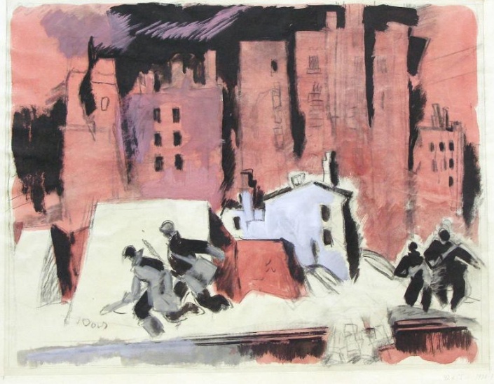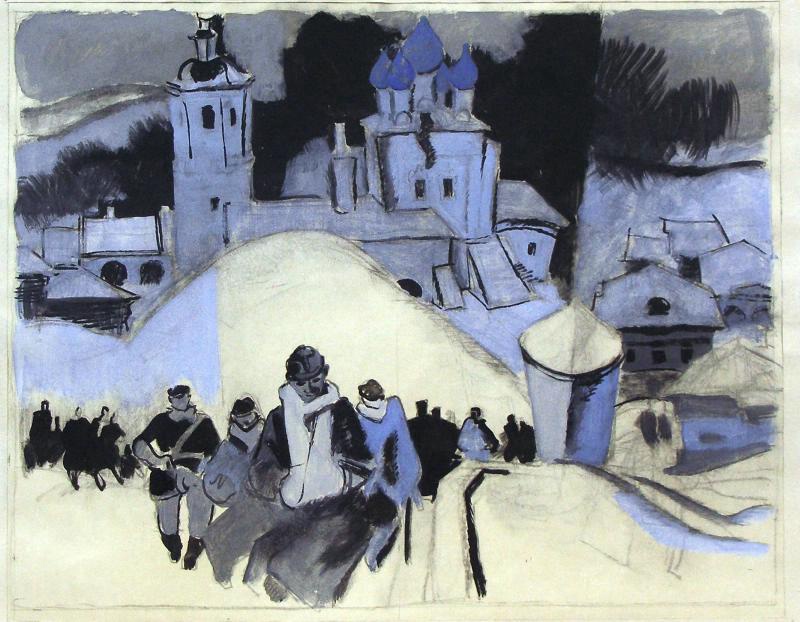 Аналогичная этой акварели карандашная зарисовка хранится в Курской государственной картинной галерее им. Дейнеки.
