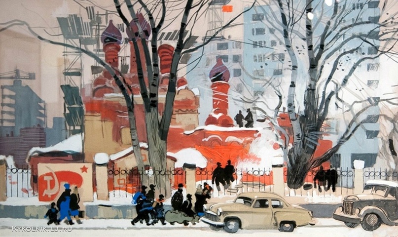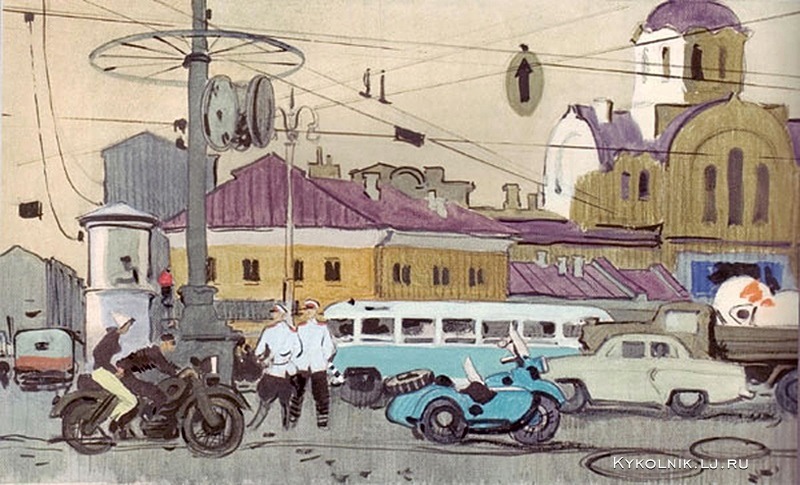 На нескольких зарисовках Сигорского присутствует монументальный силуэт Покровской церкви. Она была снесена в 1948 году, на этом месте сейчас ЦУМ.