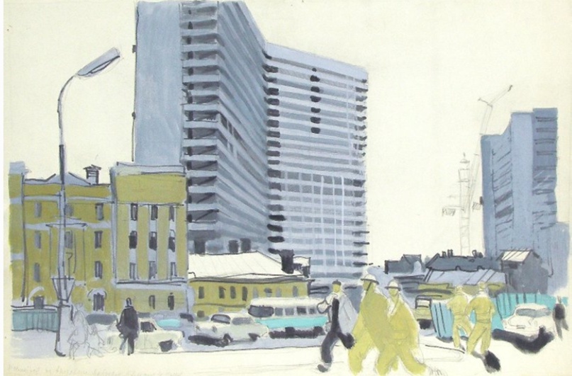 Воспевал тихую мирную жизнь старинных русских городов, древние храмы и новостройки Москвы.