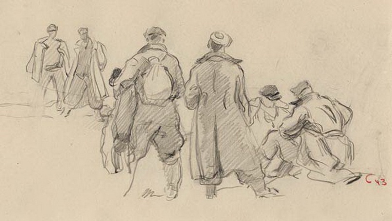 И небольшой карандашный набросок «Партизаны на слете в Орле (1943)».