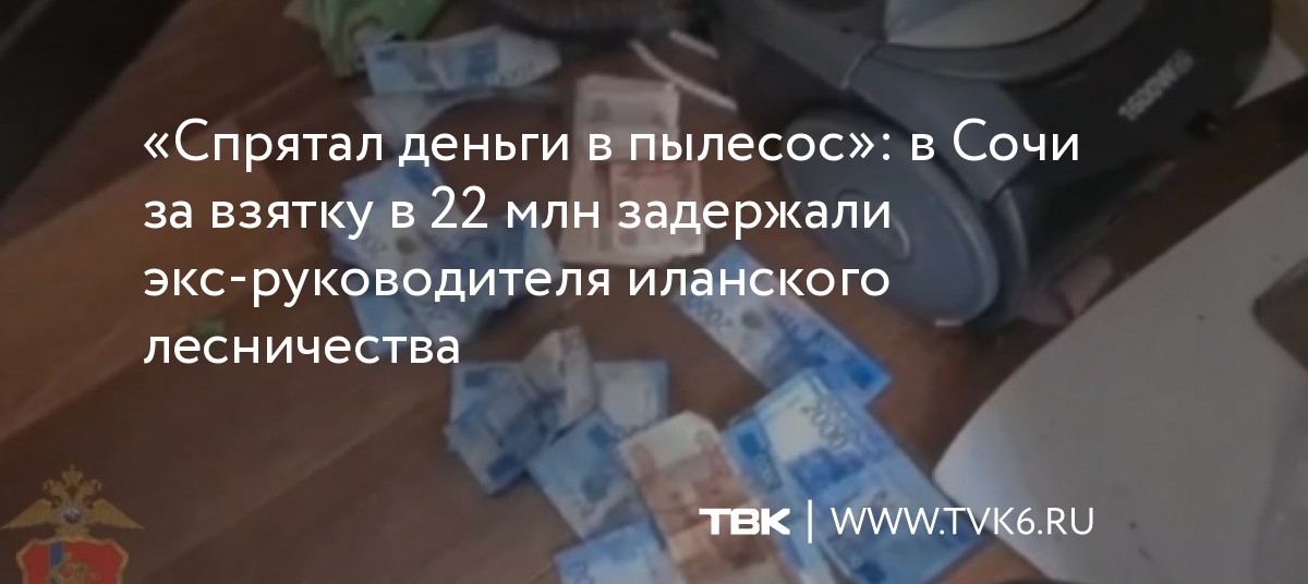«Спрятал деньги в пылесос»: в Сочи за взятку в 22 млн задержали экс-руководителя иланского лесничества