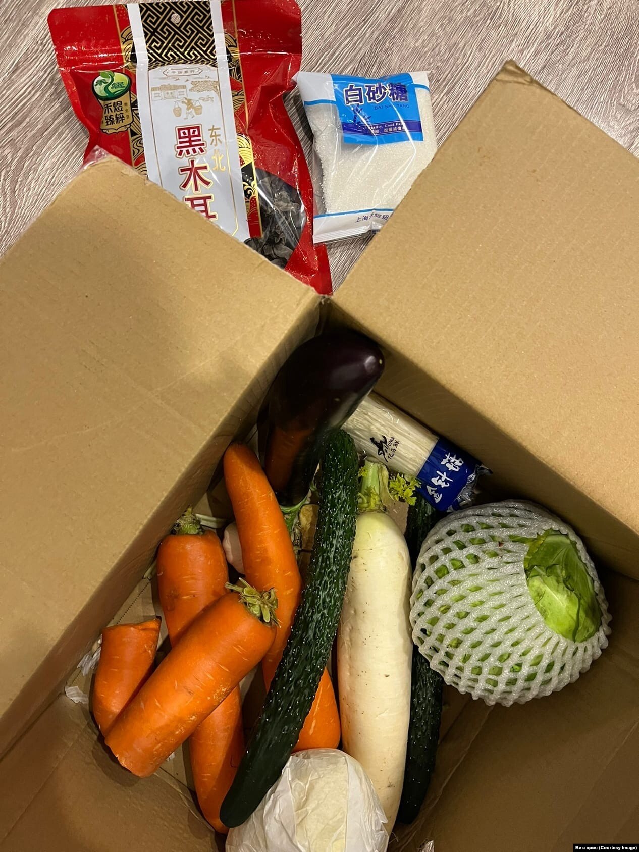 – Если не ошибаюсь, нашему дому за 42 дня давали три раза продукты, – говорит Виктория. – Первая коробка была на 7-й день карантина: зелень, капуста, лук, картошка, курица, сало, яйца. Вторая коробка была с лапшой, сосисками, булками, молоком, тофу. И третий раз дали бытовую химию, зубную пасту, пару булок и сосиски. Так что продукты давали, но их не хватит даже на неделю, максимум на два дня. Моим знакомым в другом доме давали около 10 коробок за все время, а некоторым – вообще не давали ничего.