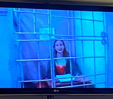 Скочиленко участвовала в заседании по видеосвязи. Судья Владимир Васюков закрыл процесс для слушателей, пришедших поддержать художницу.