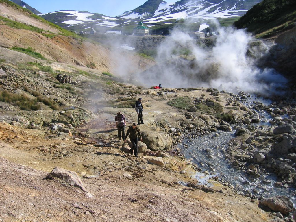 "Мы описали все найденные гейзеры, прохронометрировали стадии их деятельности и дали им имена, не увековечив ими друг друга, а по разумным соображениям. Самый большой гейзер – Великан. Гейзер, бьющий из щели - Щель. Гейзер, у которого во время извержений вода бьет из трех отверстий – Тройной. Найденный нами весной – Первенец. Работать было интересно, но и страшно. Режима источников мы не знали. В любой момент со склона, по которому мы проходили, могла выплеснуться на нас струя кипятка… Оказалось, что в палатке под спальными мешками холодная на ощупь почва прогревалась так, что мы спали как на печке, а в нескольких метрах от нашей палатки пасущаяся лошадь внезапно провалилась задними ногами, а из образовавшихся отверстий все время, пока мы были в долине, поднимался пар".