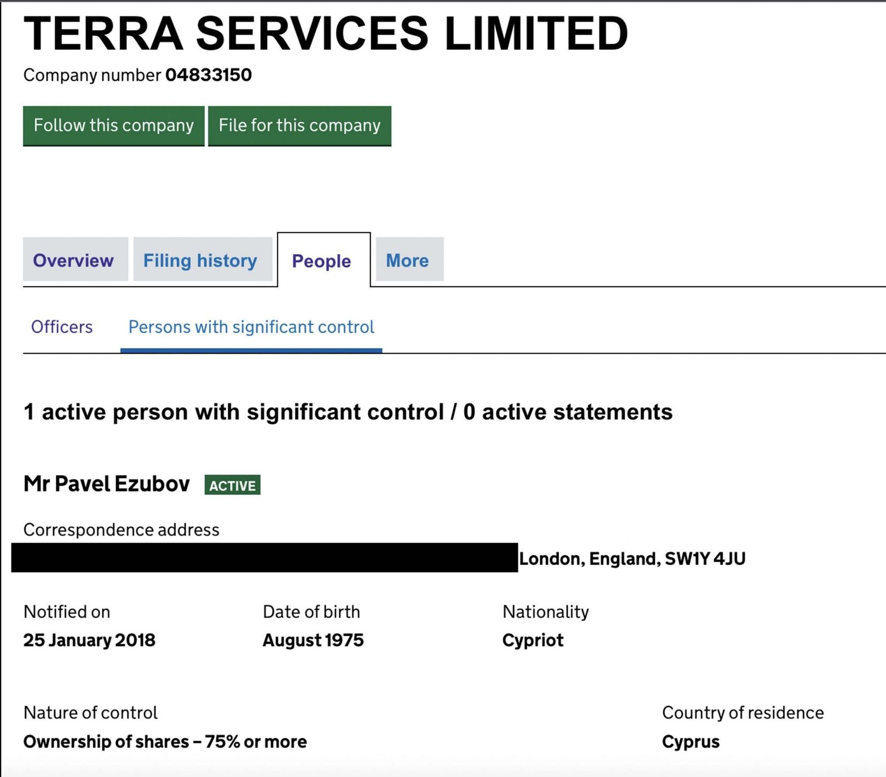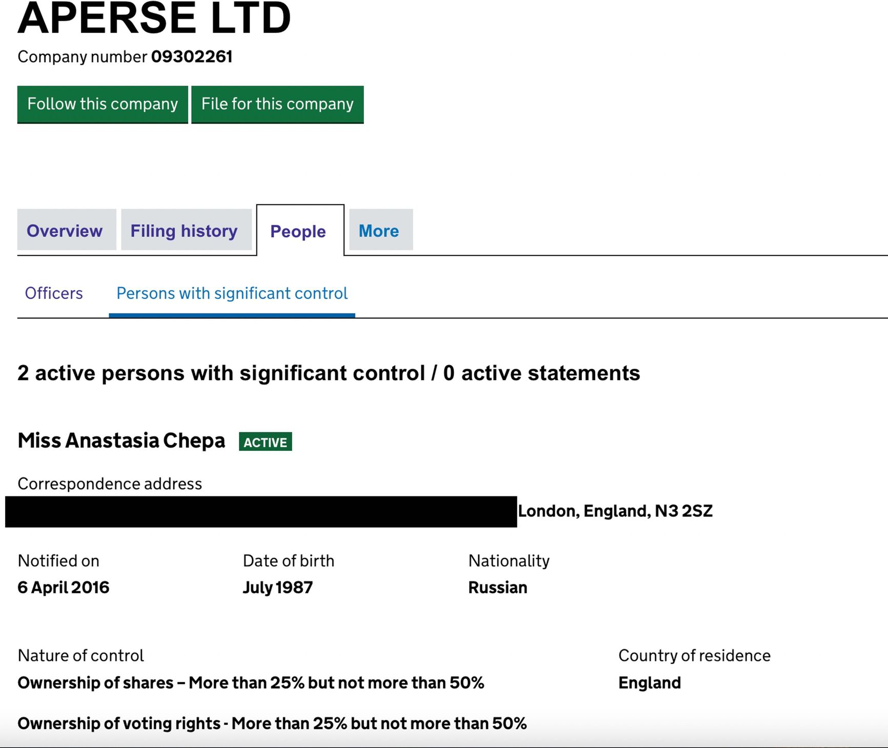 Olga indicated a rented apartment in London as her address.
