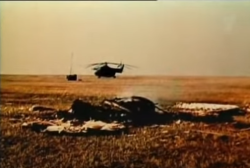 «Беглый осмотр корабля убедил меня в том, что Комаров погиб и его останки находятся в обломках догорающего корабля, — писал на следующий день Каманин, прибывший на место катастрофы. — Я приказал очищать обломки корабля от земли и искать тело космонавта… Через час раскопок мы обнаружили тело Комарова среди обломков корабля. Первое время было трудно разобрать, где голова, где руки и ноги.