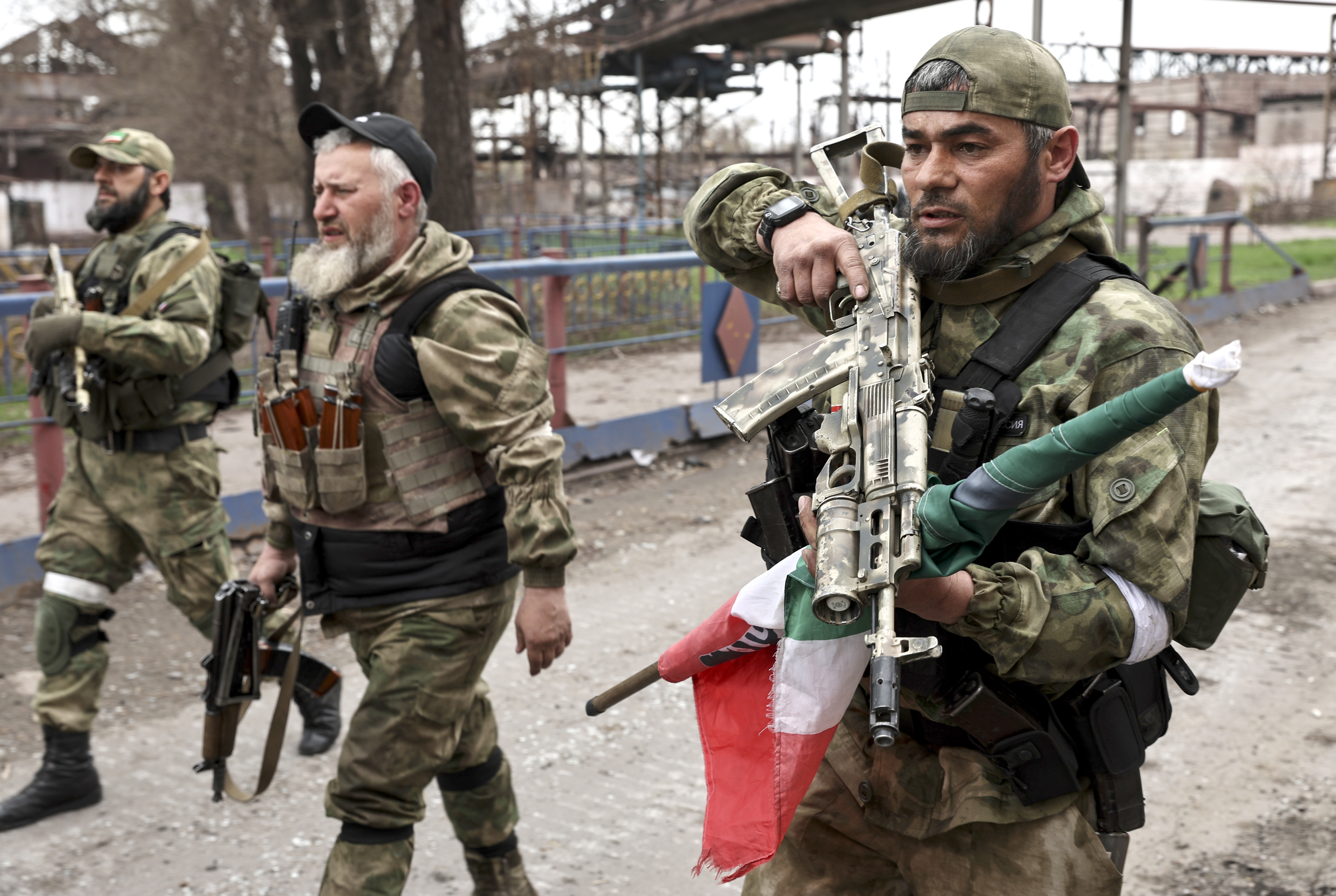 Бойцы так называемого чеченского добровольческого батальона "Ахмат". Мариуполь, 17 апреля 2022 года