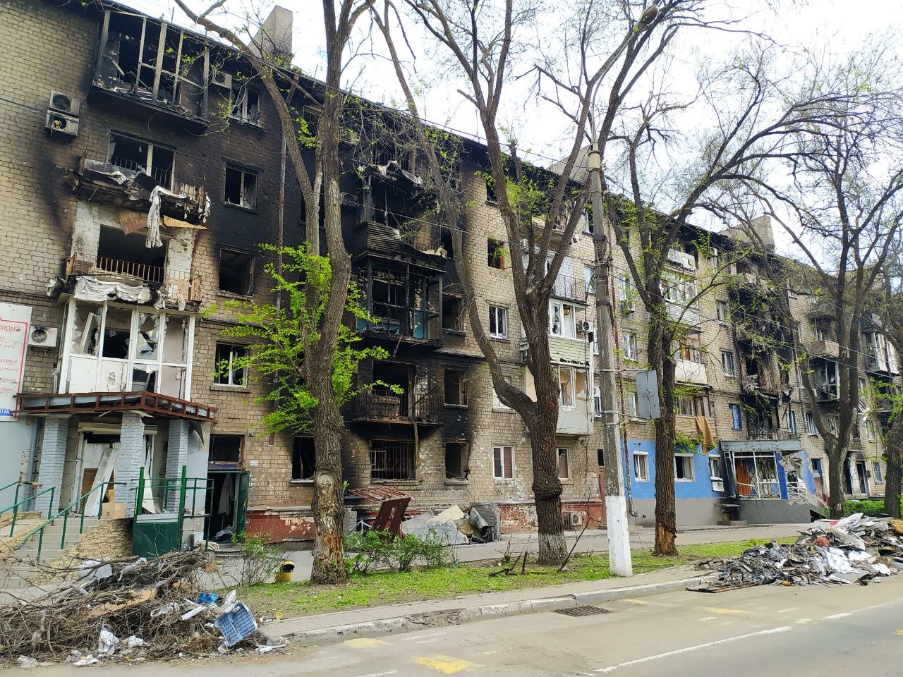 Практически каждый дом имеет хотя бы одно попадание. Мариуполь, 12 мая 2022 года. Виталий Лейбин