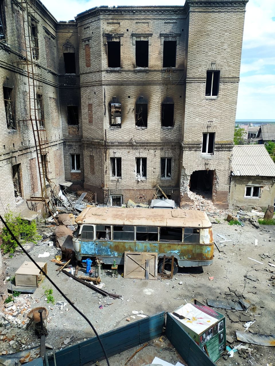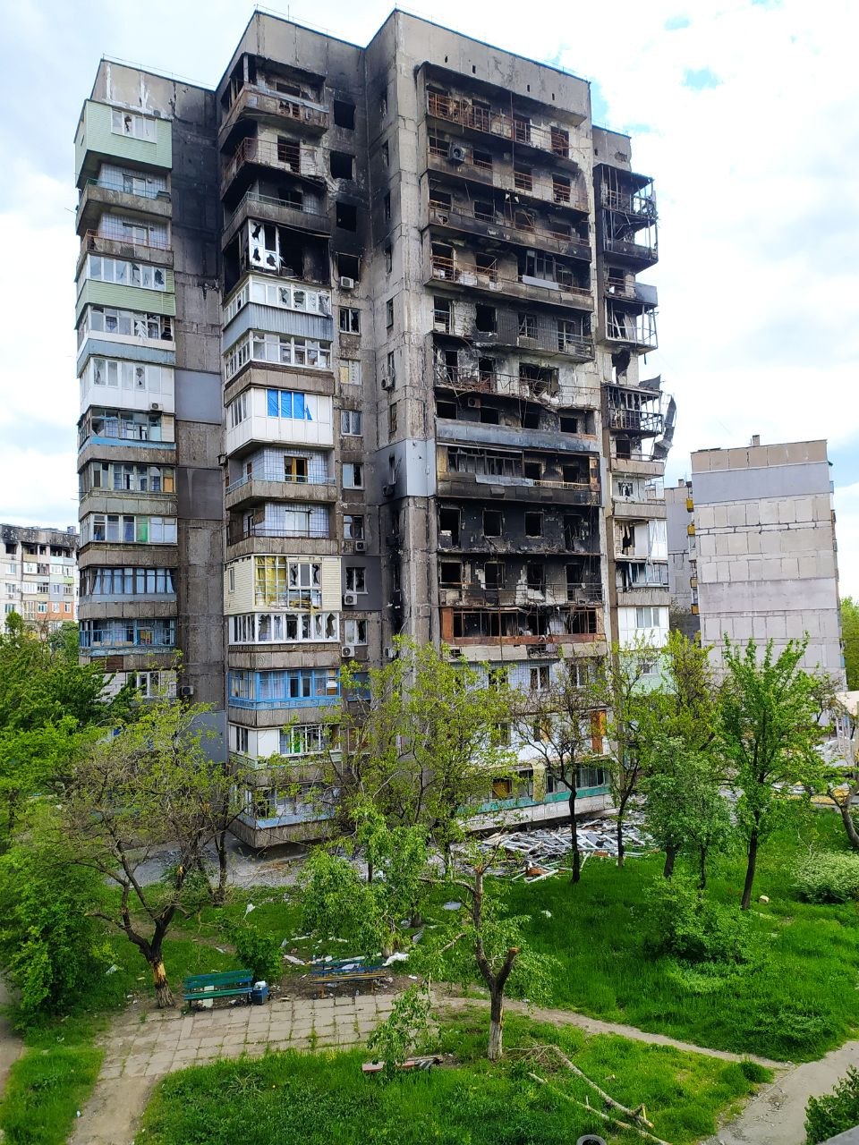 Верхние этажи этого дома сгорели полностью. Мариуполь, 12 мая 2022 года. Виталий Лейбин