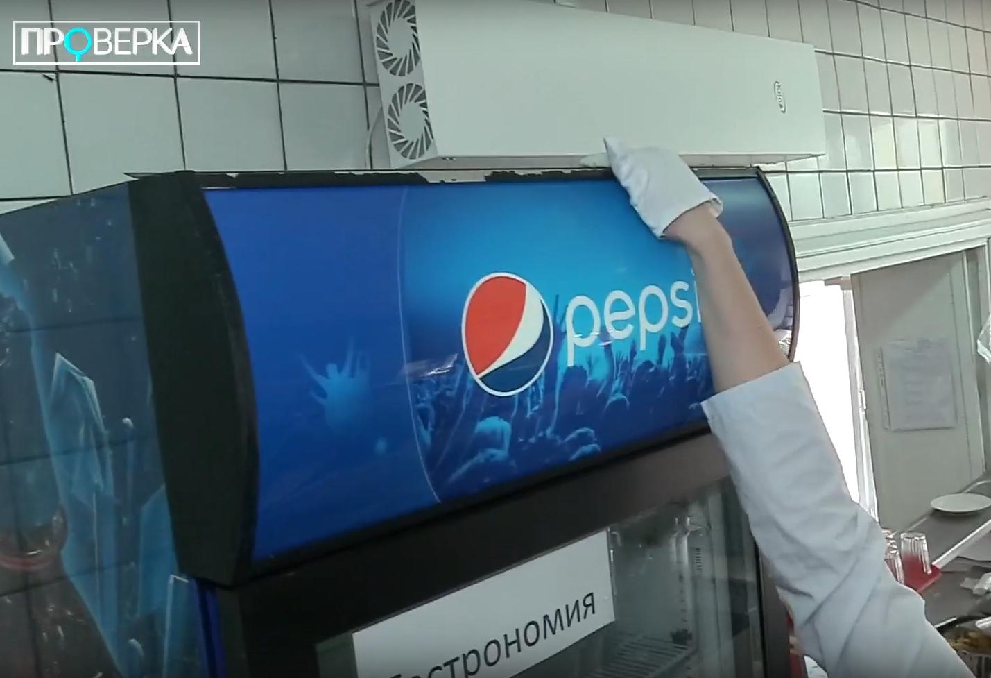 Высоки поверхности проверку на уборку не прошли – белая перчатка ведущей покрылась слоем грязи. Легко представить, как все это летит и сыпется сверху на продукты.