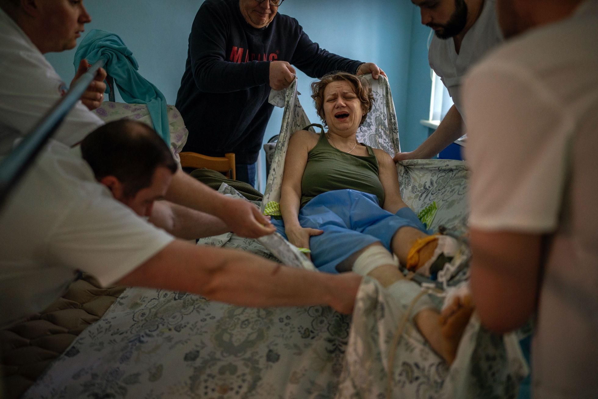 Сорокапятилетняя Олена Витер потеряла левую ногу 14 марта во время обстрела села Розважив Киевской области. Этот же взрыв убил ее 14-летнего сына Ивана.