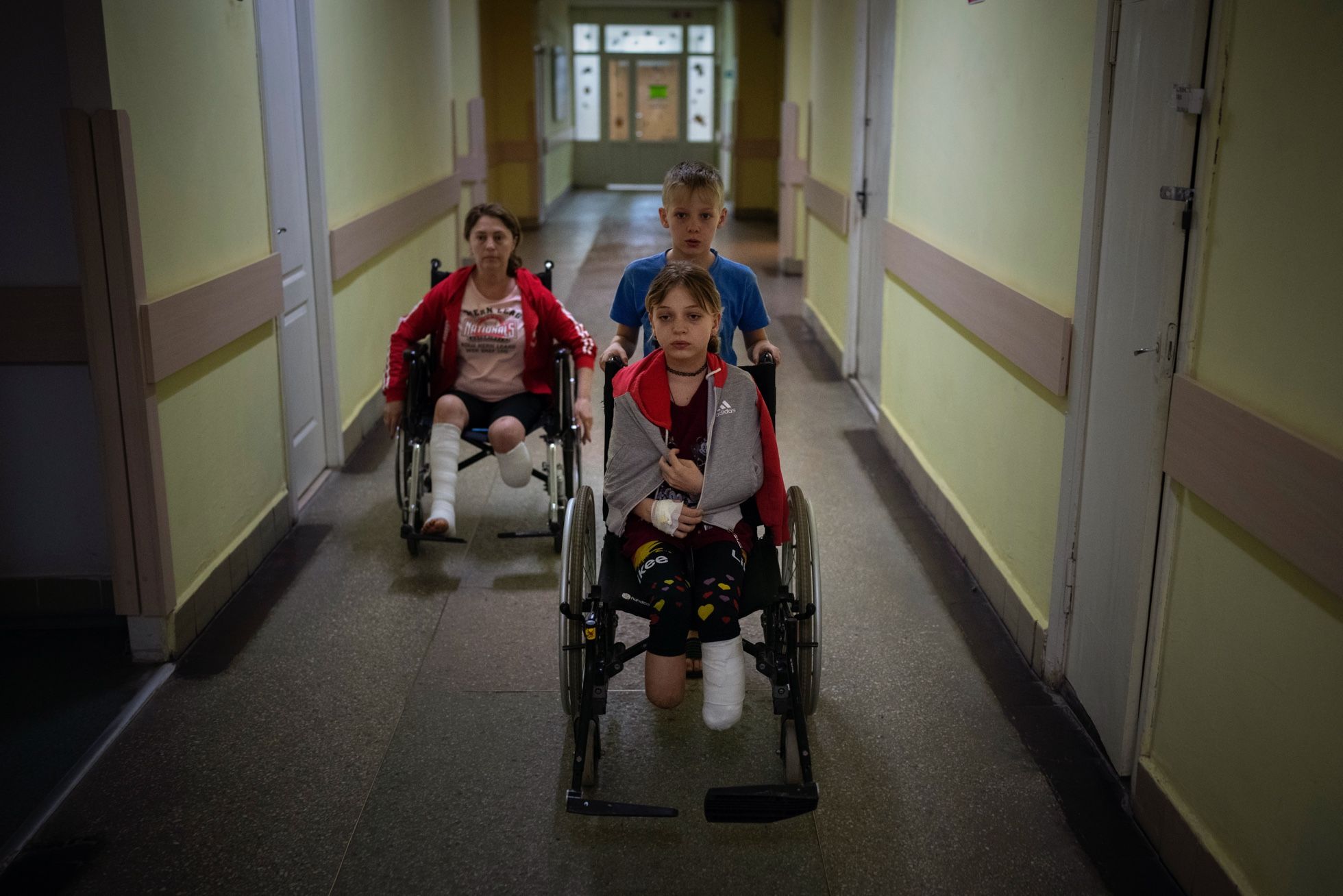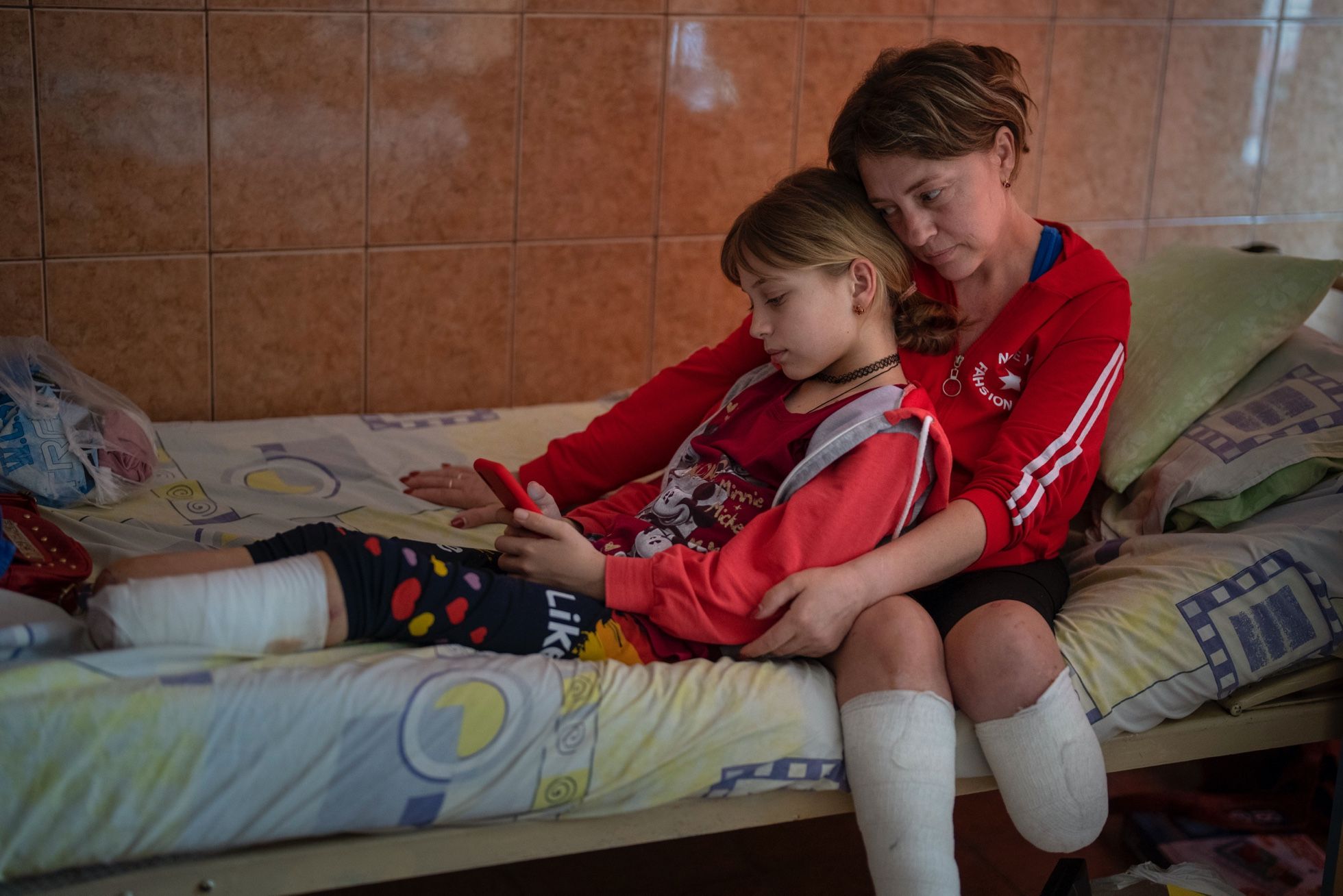 Девочка потеряла две ноги — одну чуть выше щиколотки, другую ниже колена. Наташа потеряла левую ногу ниже колена. Брат не пострадал. Теперь именно он заботится о сестре и маме, пока они в больнице. Муж Натальи воюет на фронте.