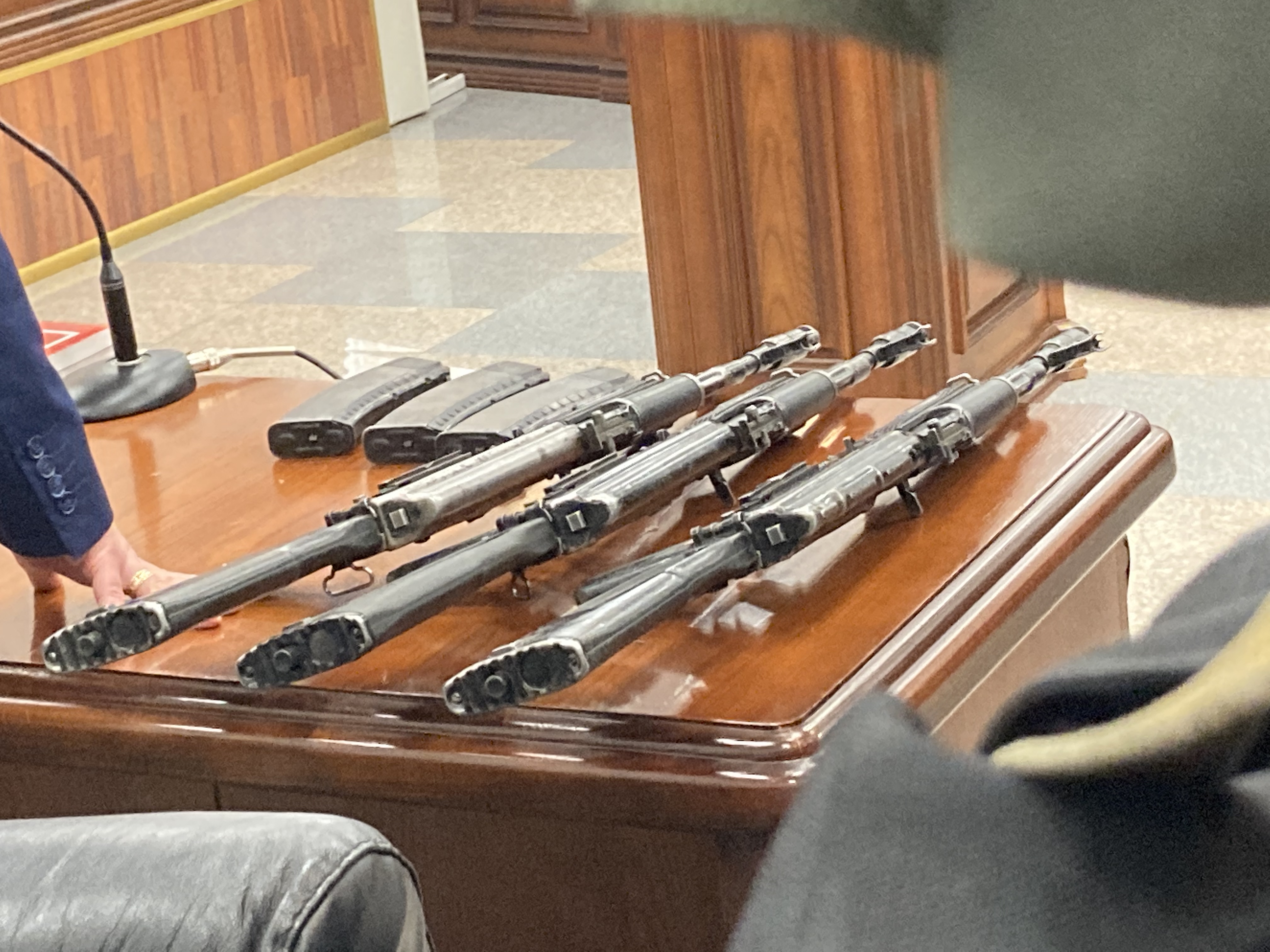 Прокуроры показывают страшные вещдоки – автоматы российских солдат