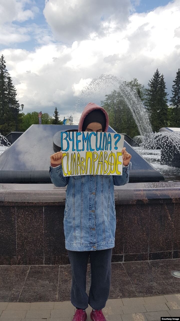 20 мая в Уфе полиция задержала 30-летнюю жительницу города, хореографа Ильмиру Рахматуллину, вышедшую на одиночный антивоенный пикет в парке Гафури. В руках Рахматуллина держала плакат со словами: "В чем сила? Сила в правде", окрашенными в синий и желтый цвета. Трехчасовое пребывание в полиции превратилось для активистки, по ее словам, в сплошную цепь издевательств и запугиваний, закончившуюся вызовом к ней "Скорой помощи".