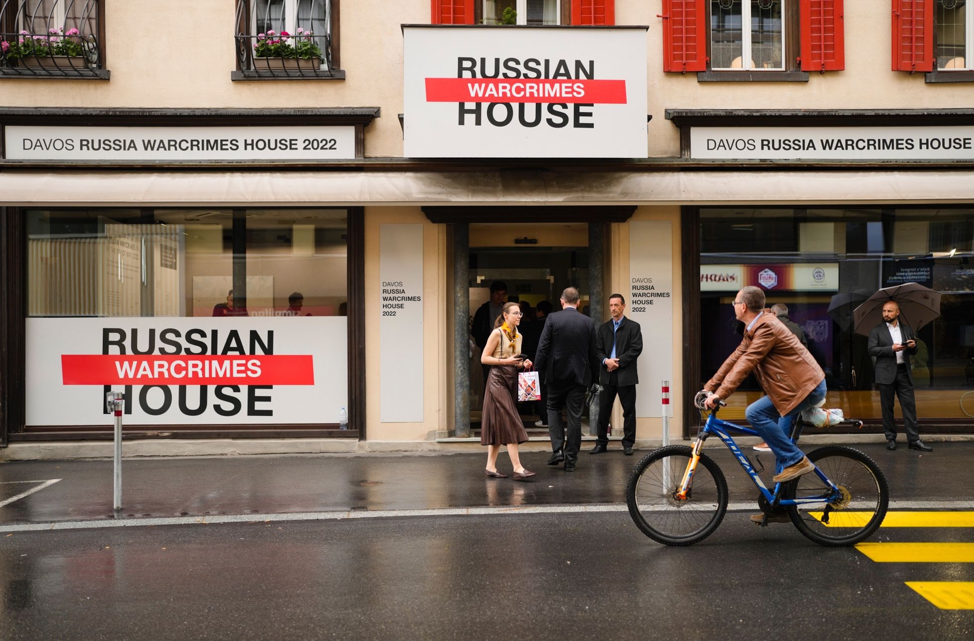 Вместе со Всемирным экономическим форумом в Давосе открылась выставка «Дом военных преступлений России»