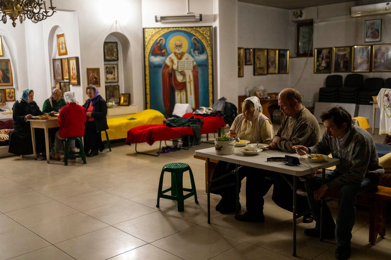 John Moore / Getty Images Жилые дома в Харькове. Российские войска в последние недели были вытеснены к северу от города, к границе с Белгородской областью, однако недавно в этом районе проходили и контратаки российских силJohn Moore / Getty Images Корпус разбитого украинского военного вертолета на улицах ХарьковаBernat Armangue / AP / Scanpix / LETA Беженцы обедают в подвале украинской православной церкви в Харькове