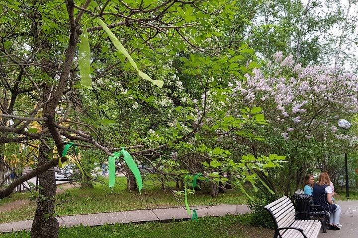 *12:24* Зеленые ленты на улицах Барнаула.