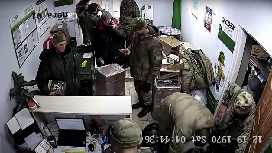 Российские военные в офисе компании «СДЭК». Скриншот из видео телеграм-канала «Беларускi Гаюн»