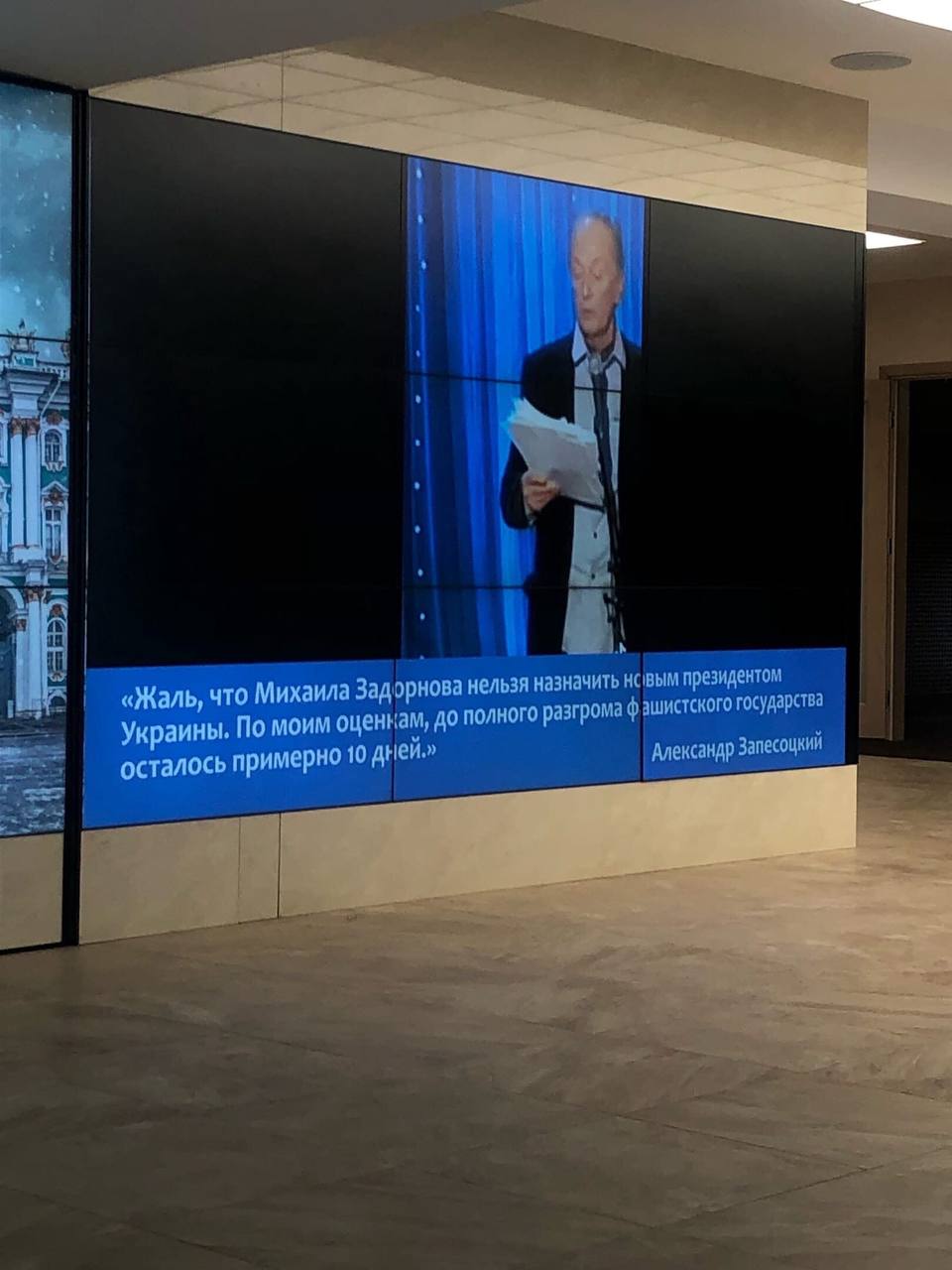 Также, по словам Корнева, на первом этаже вуза повесили телевизор, чтобы показывать КВН с «очень тупыми шуточками про украинцев» и выступления ректора Александра Запесоцкого (выступал в 2012 году доверенным лицом Владимира Путина на выборах президента), в которых он поддерживает российское вторжение в Украину. Вячеслава Корнева это не удивило – Запесоцкий регулярно попадает в скандалы. Например, в 2013 в ответ на жалобу о высоких ценах в столовой он заявил, что «ценами недовольны около десятка убогих», назвал таких студентов «беспомощными», «немощными» и «бесполезными стране». В 2014 году из СПбГУП массово отчислили 150 человек за «неспособность к поведению на уровне университетских стандартов». Ректор сказал, что это «мягкая форма избавления от балласта». А в 2019 году Комиссия РАН по противодействию фальсификации научных исследований не рекомендовала избирать Запесоцкого академиком РАН в связи с нарушениями академической этики.