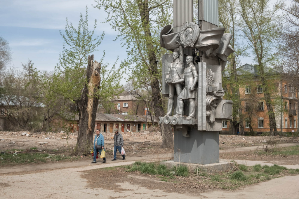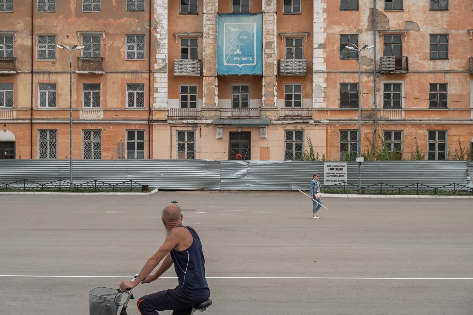 На въезде в город начинаются руины Алтайского тракторного завода: горящие покрышки, разваленные постройки, объявления о скупке чермета. АТЗ создали в 1941 году из эвакуированных подальше от линии фронта Харьковского, Одесского и Сталинградского тракторных заводов. Население Рубцовска вместе с появлением предприятия увеличилось в 2,5 раза и росло, пока завод развивался. В 2011 году АТЗ прекратил работу как банкрот и Рубцовск начал затухать.