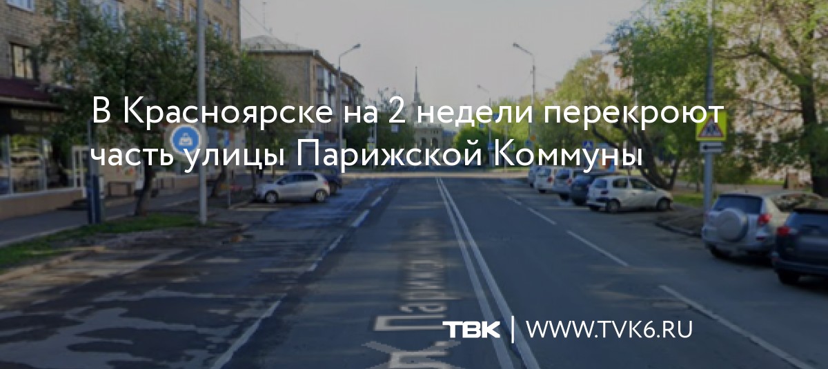 В Красноярске на 2 недели перекроют часть улицы Парижской Коммуны