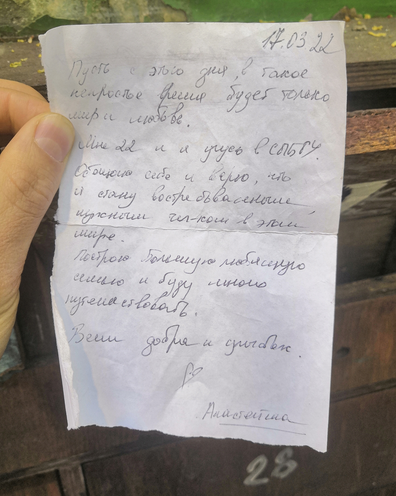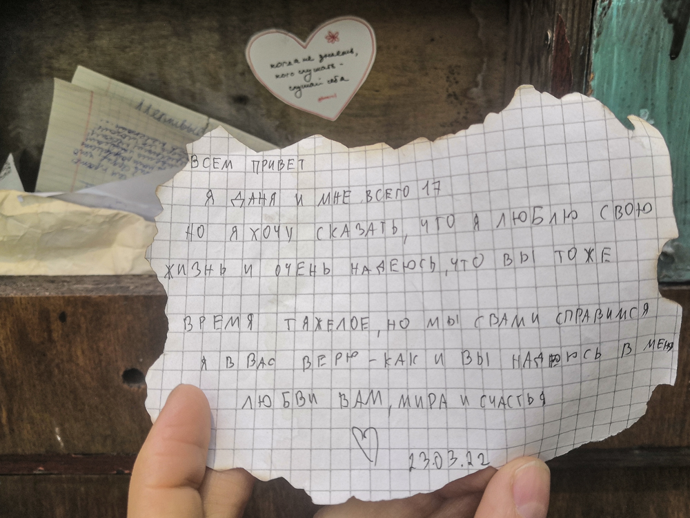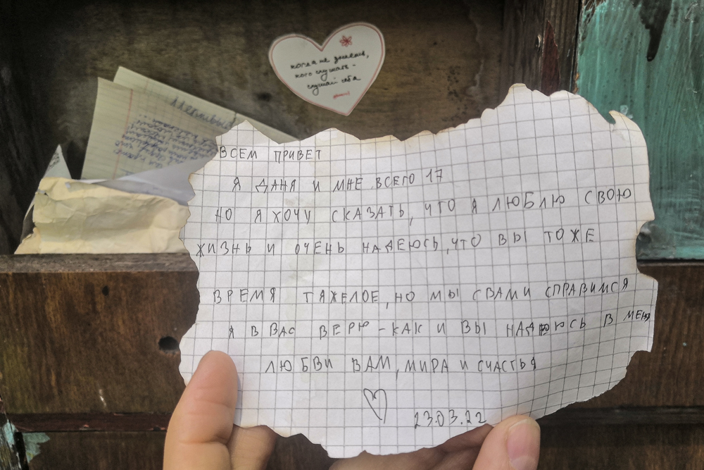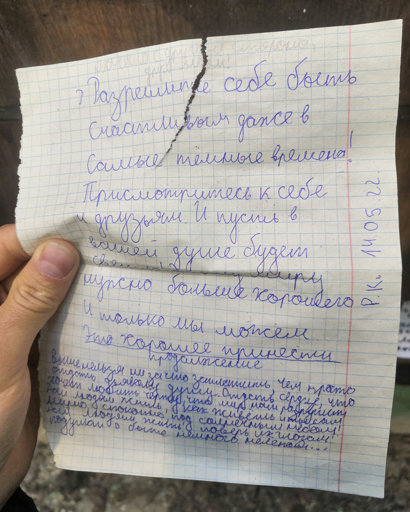 В мае 2022 года «Бумага» заметила, что в ящиках лежат личные письма горожан. В посланиях петербуржцы рассуждают о трудном времени, в которое им приходится жить, поддерживают друг друга и выступают против войны в Украине. Публикуем некоторые из записок.