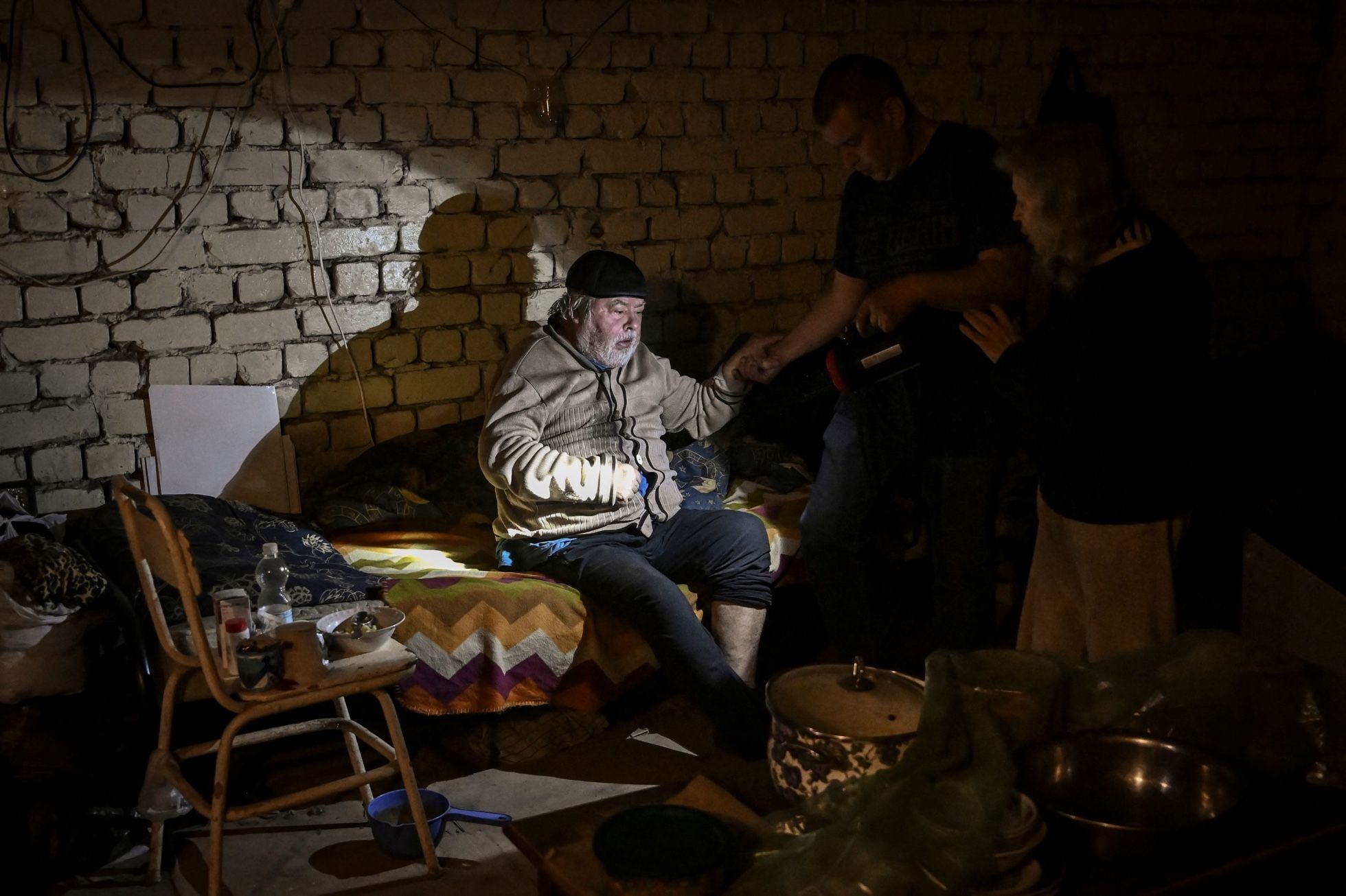 Мужчина помогает отцу в подвале их дома в Лисичанске