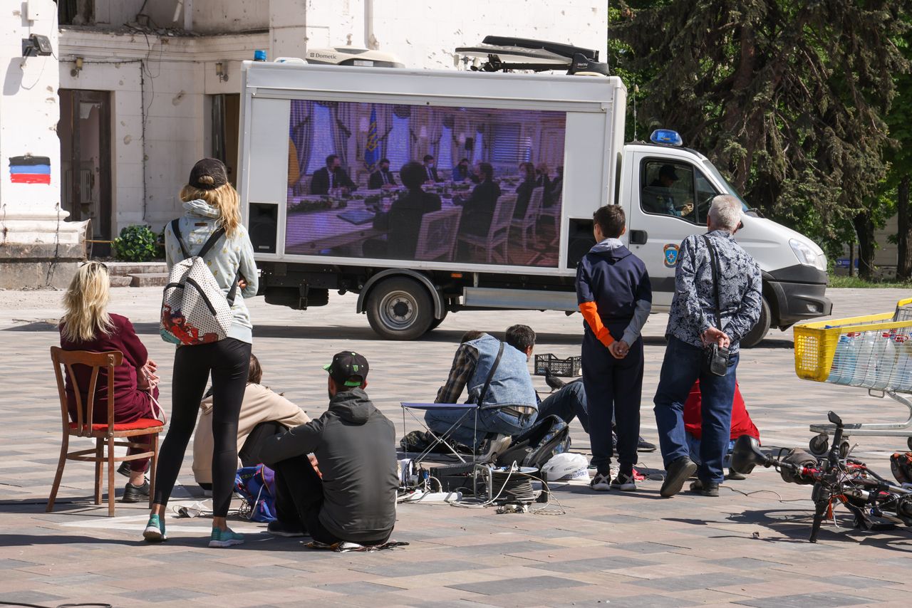 Накануне в соцсетях появились видео из Мариуполя с автозаками с большими экранами, на которых транслируют российские федеральные телеканалы.