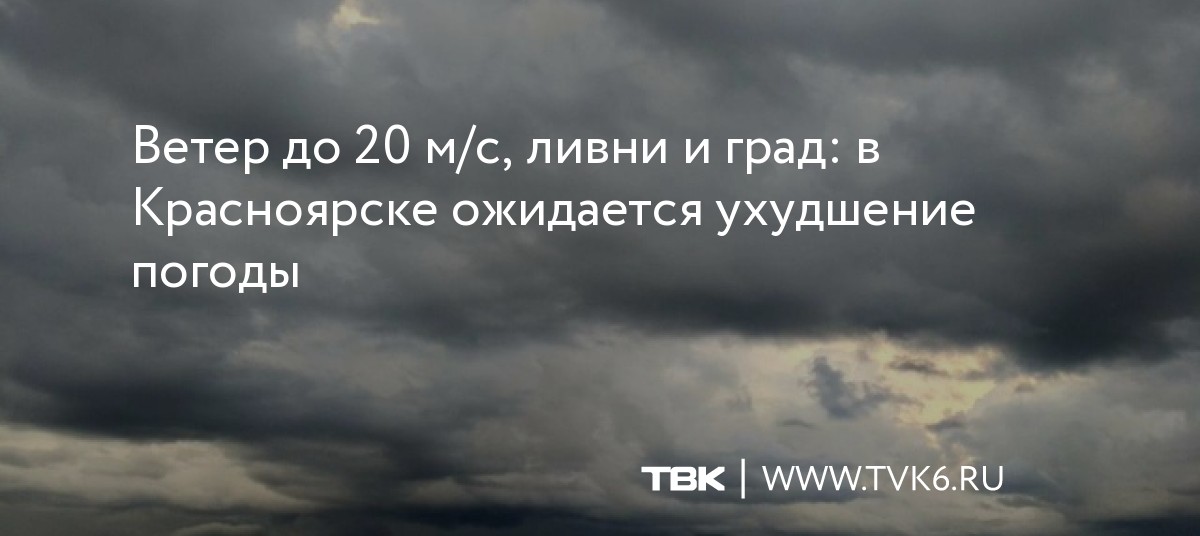 Ветер до 20 м/с, ливни и град: в Красноярске ожидается ухудшение погоды