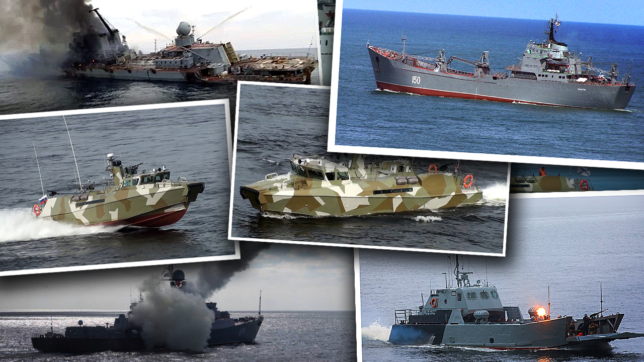 Тринадцать кораблей и катеров, по информации Генштаба ВСУ, потерял флот России с начала полномасштабного вторжения в Украину. Это ориентировочные цифры без уточнений о характере повреждений. Эксперты же говорят, что точно можно обсуждать такие потери: крейсер «Москва», БДК «Саратов», десантный катер типа «Серна» и три катера типа «Раптор». Что известно о тех кораблях, которые стоят на ремонте в Севастополе? Как Россия изменила тактику на море? И смогут ли украинские ракеты достать Змеиный, если Россия усилила противовоздушную оборону острова? Об этом читайте в нашем материале.