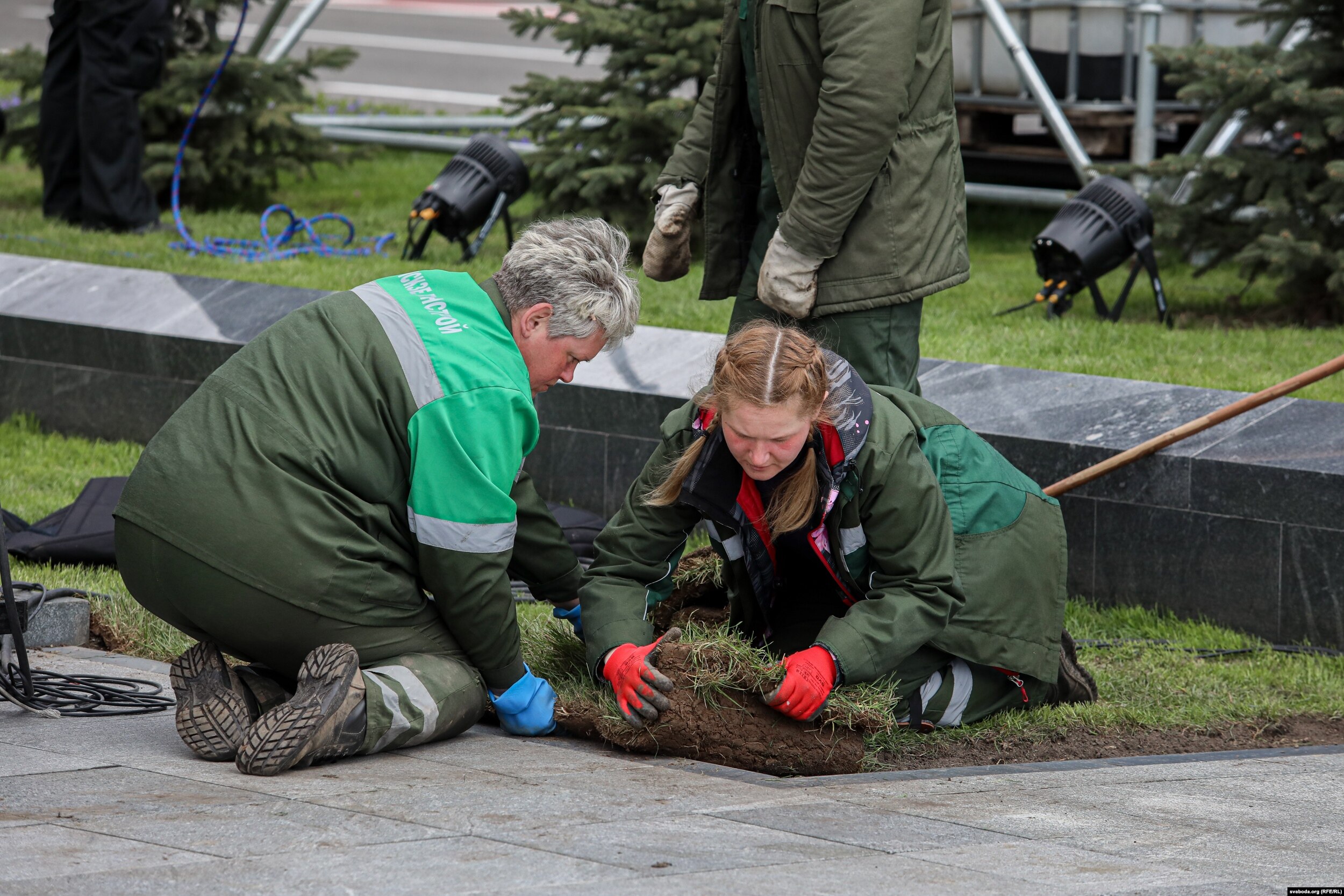 Издание уточняет, что место, где был газон, будут засеивать травой.