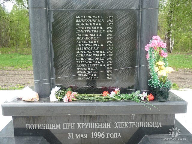 – Каждый год мы ездим на место трагедии. Там обелиск. Обычно нам железная дорога выделяет мотрису, но многие уже не могут на ней ехать. Старенькие родители мужа живут в Юрге, ноги у них не гнутся, чтобы забраться в автомотрису, а на автомобиле проехать тяжело. Дожди льют, дороги плохие, грунтовые, размывает. Иногда приходится толкать застрявшую машину. Но мы все равно приезжаем туда. Почти все, кто был в первом вагоне, погибли. Среди них – мой муж Рашид Мазитов. Он работал монтером пути, путейцем. Вместе со своими товарищами они ремонтировали железнодорожное полотно: разбирали старые деревянные шпалы, ставили новые. Тяжелая работа – весь день ломом да лопатой махать. Он немного не дожил до своего дня рождения, 24 июня ему бы исполнилось 33 года, – рассказала Альфия Мазитова, жительница города Тайги. – У меня осталась четырехлетняя дочь Альмира. Замуж я больше не выходила. Многие остались вдовами. Из тех, кого помню: у Натальи Волошиной в той электричке погиб 44-летний муж. Он вместе с путейцами ехал в первом вагоне. Людмила Шкурова потеряла 28-летнего сына Дмитрия, а Вера Исхакова – 31-летнего мужа. На руках у нее осталась четырехлетняя дочь. Погибла Галина Бобович, осиротели двое ее детей.