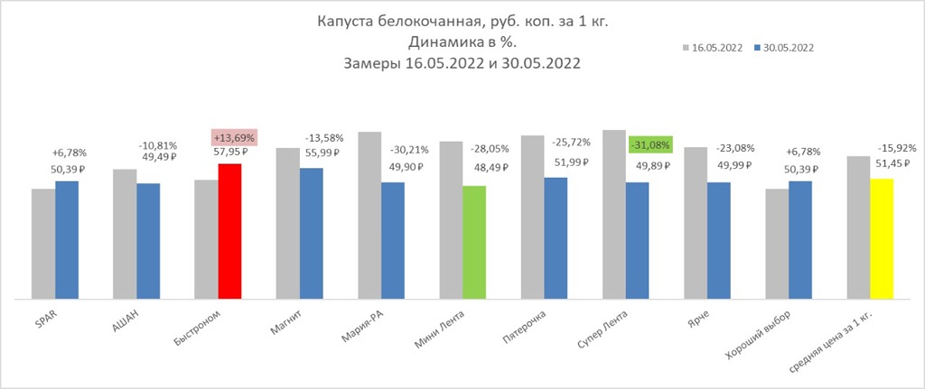 В апреле мы рассказывали о стоимости наиболее популярных овощей в 20 магазинах в различных районах города. Оцениваем динамику в тех же торговых точках.