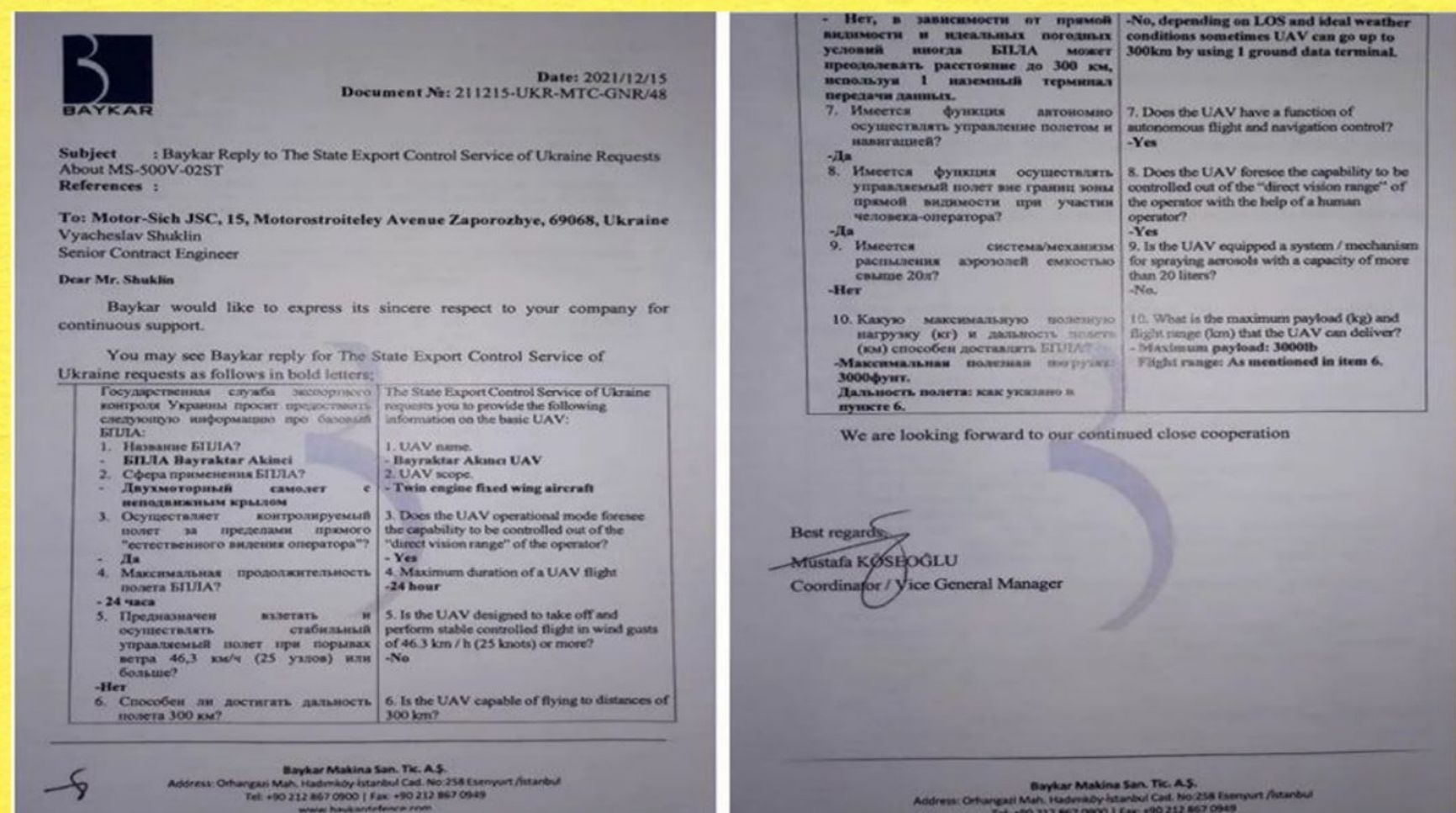 Это ответы на 10 вопросов о технических характеристиках беспилотника; среди них и вопрос о том, оснащен ли он системой распыления аэрозолей. Ответ на этот пункт отрицательный. Абсолютно ничто не указывает на то, что украинцы собирались оборудовать «Байрактар» таким устройством. Информационное агентство «Красная весна» 11 мая сообщало, что в районе Каховки обнаружили 10 украинских беспилотников, оборудованных распылителями, но фотографию почему-то не опубликовало. Так «доработанных „Байрактаров”» никто и не видел.