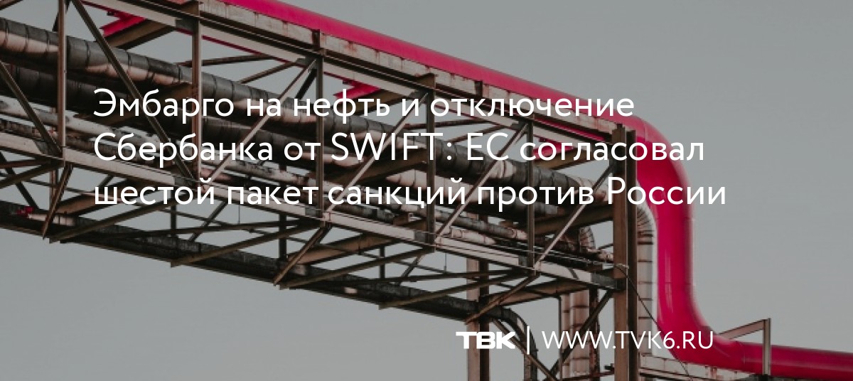 Эмбарго на нефть и отключение Сбербанка от SWIFT: ЕС согласовал шестой пакет санкций против России