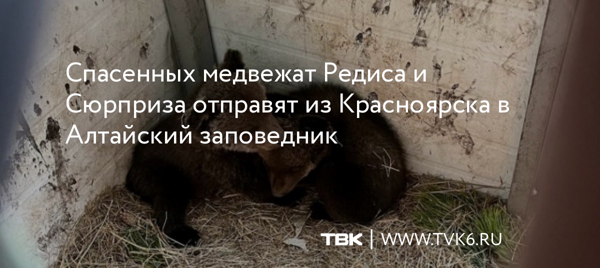 Спасенных медвежат Редиса и Сюрприза отправят из Красноярска в Алтайский заповедник