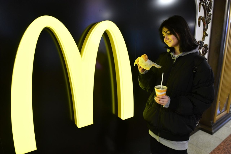 Девушка у ресторана McDonald’s в Москве в марте. Фото: Komsomolskaya Pravda/Global Look Press